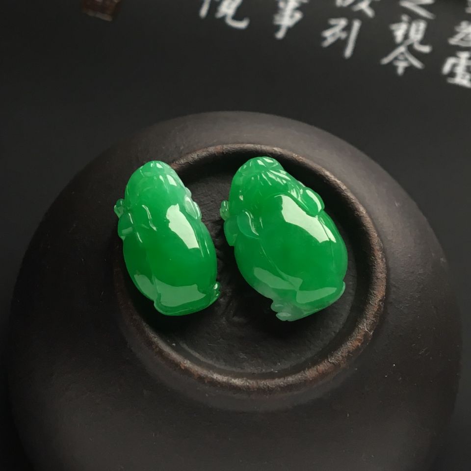 首页 >> (超值推荐)糯冰种翠色招财进宝戒面(一对)