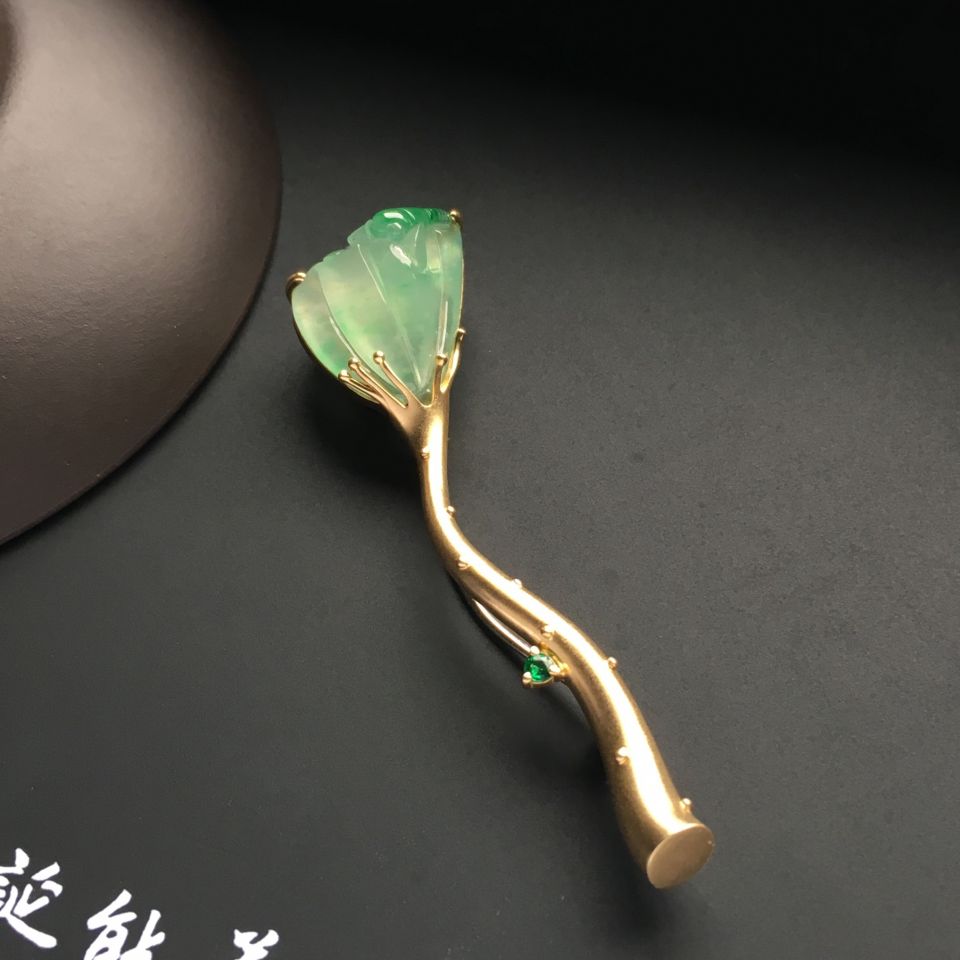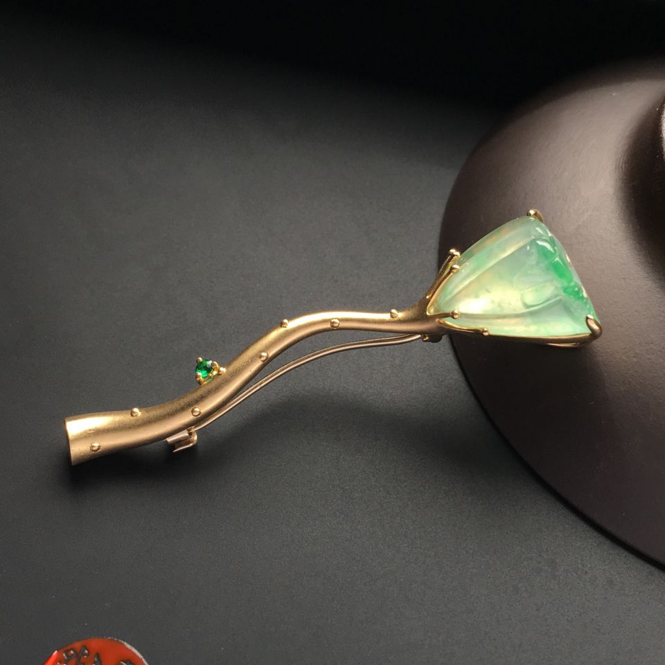 首页 >> 黄18k金冰种略飘翠连生贵子胸针