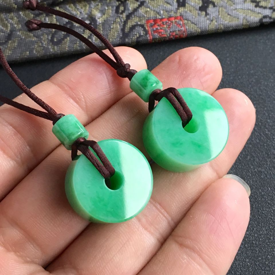 糯冰种翠色路路通挂件一对走