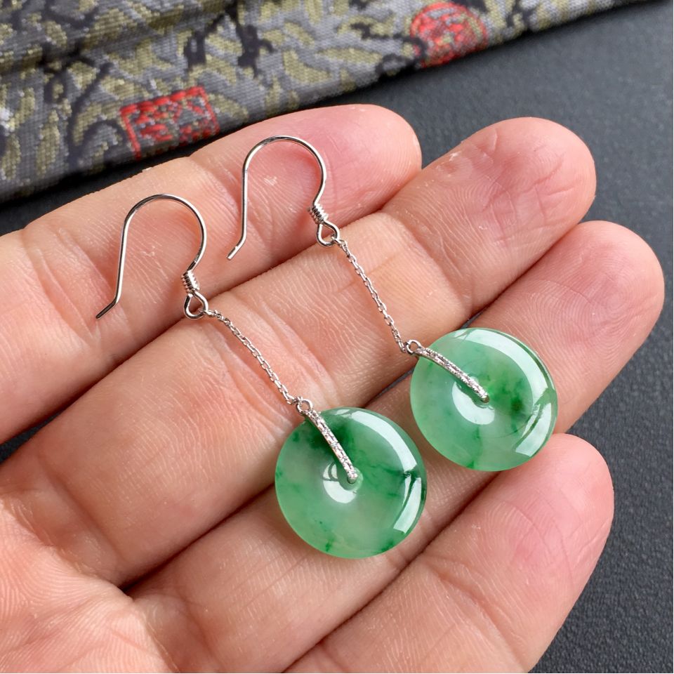 首页 >> 糯冰种飘翠镶白金平安扣耳坠一对