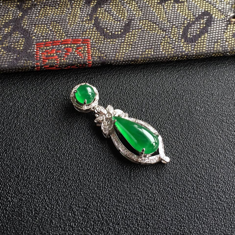 首页 >> 冰种蓝绿镶白金钻石水滴胸坠