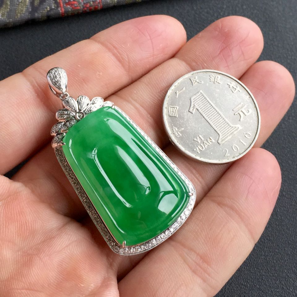 糯冰种翠色镶白金钻石福在眼前胸坠
