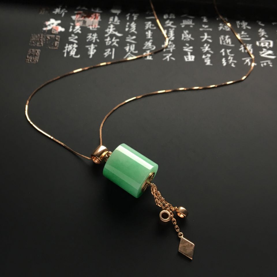 首页 >> 镶玫瑰金糯冰种飘翠路路通胸坠(金链)