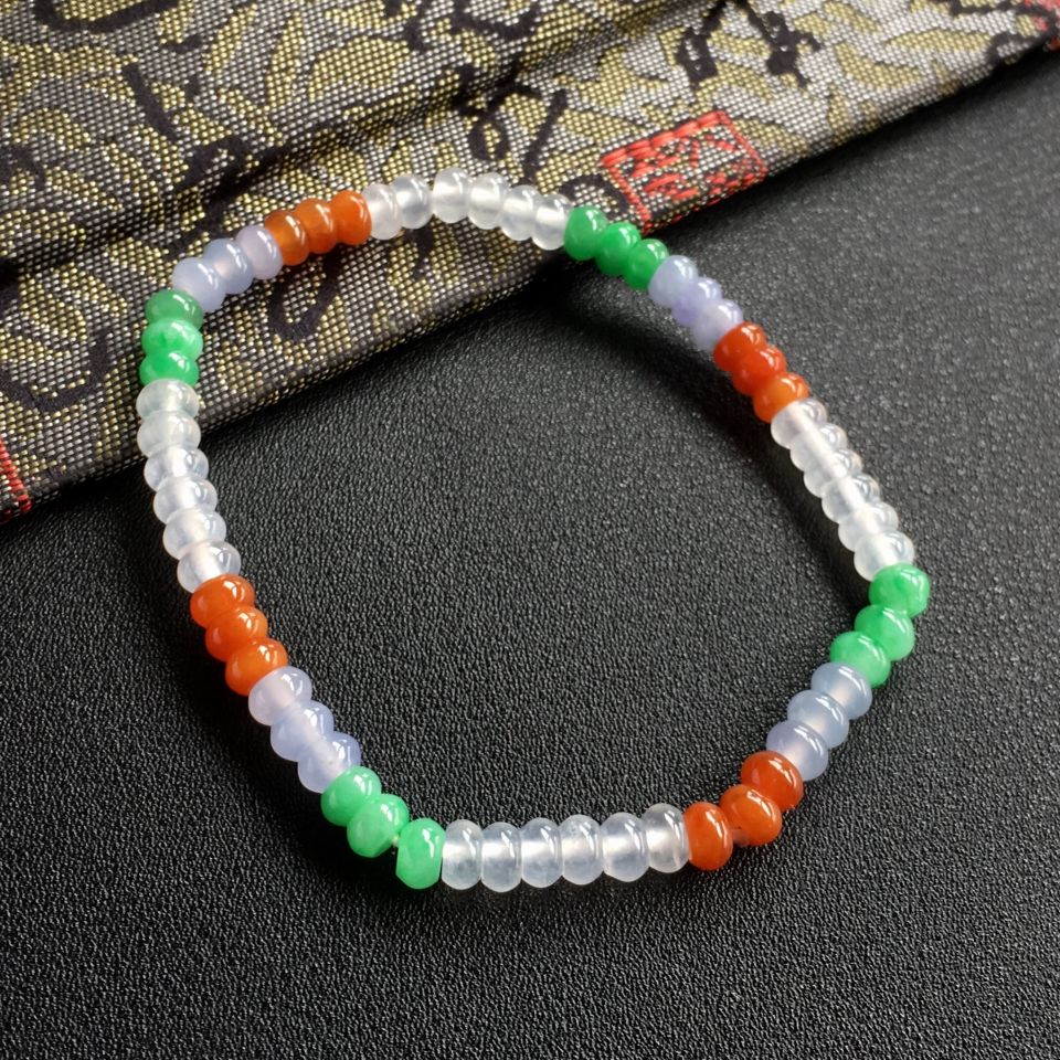 (超值推荐)冰玻种/糯冰种三彩算盘珠手串