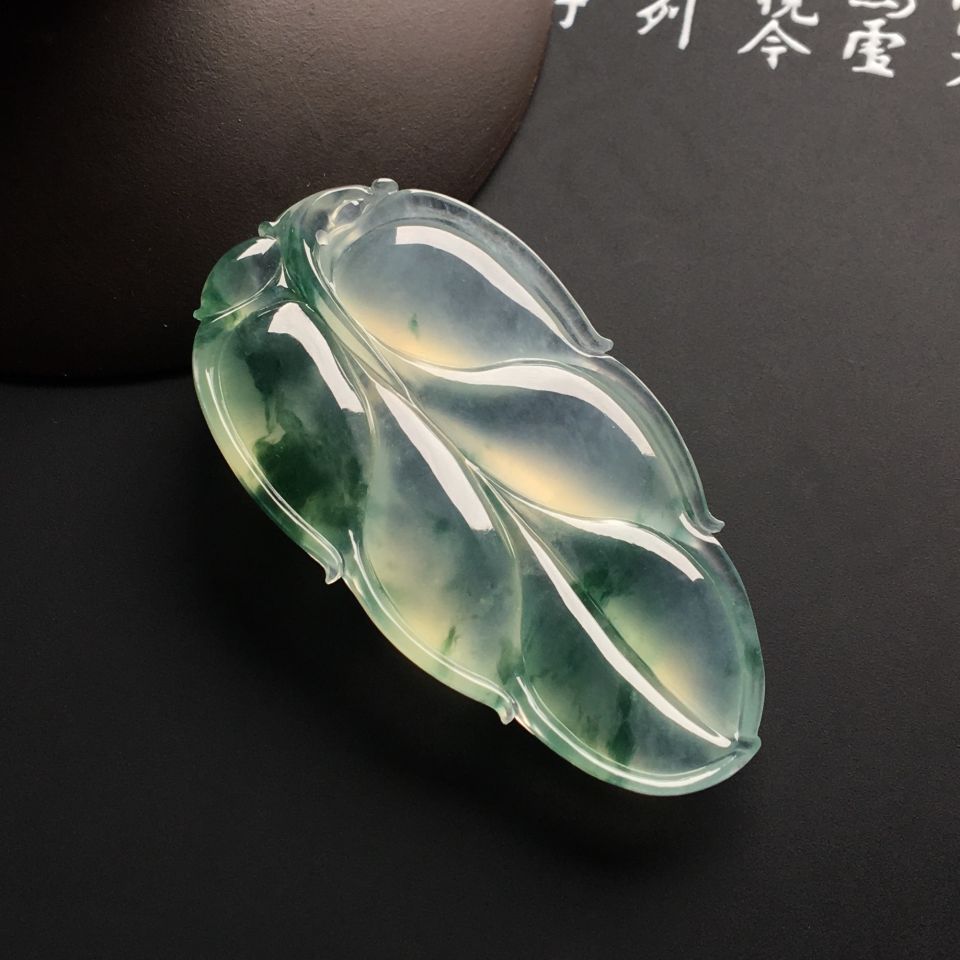 冰种飘花玉叶挂件