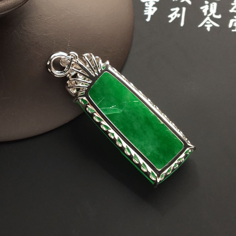 首页 >> 镶白金钻石糯冰种阳绿节节高胸坠