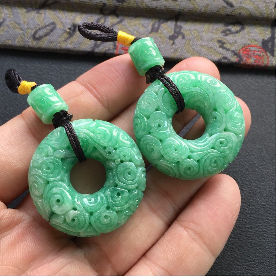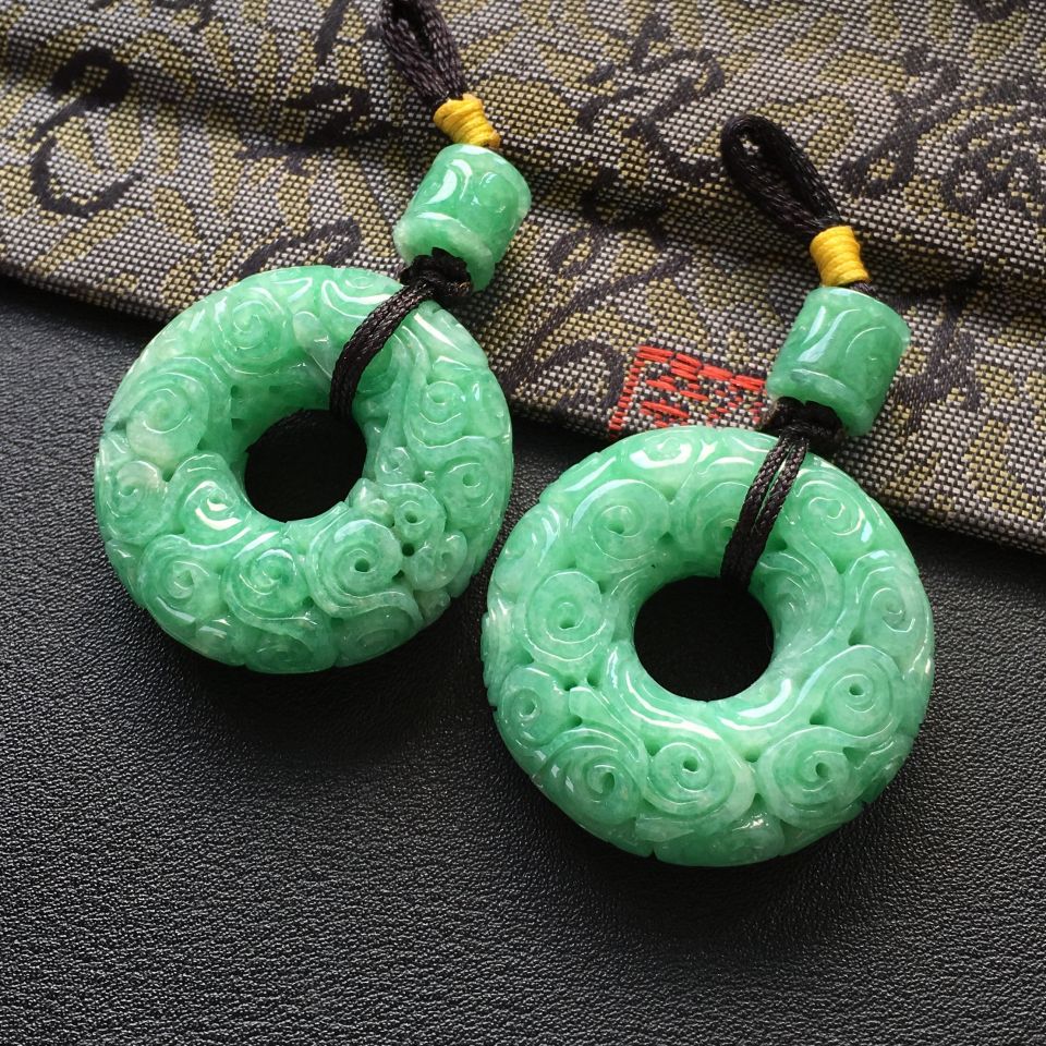 首页 >> 糯冰种豆绿仿古平安环一对走