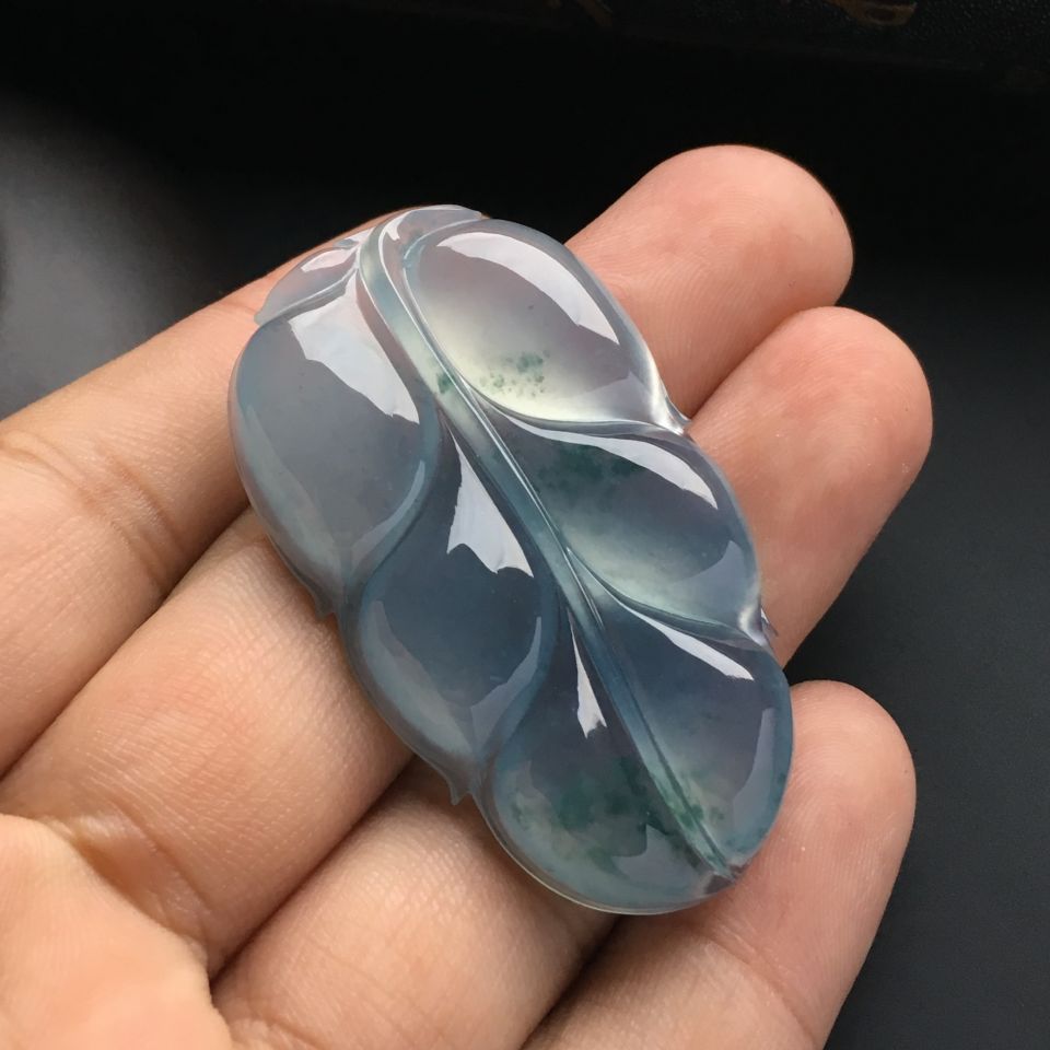 冰种晴水飘花玉叶挂件