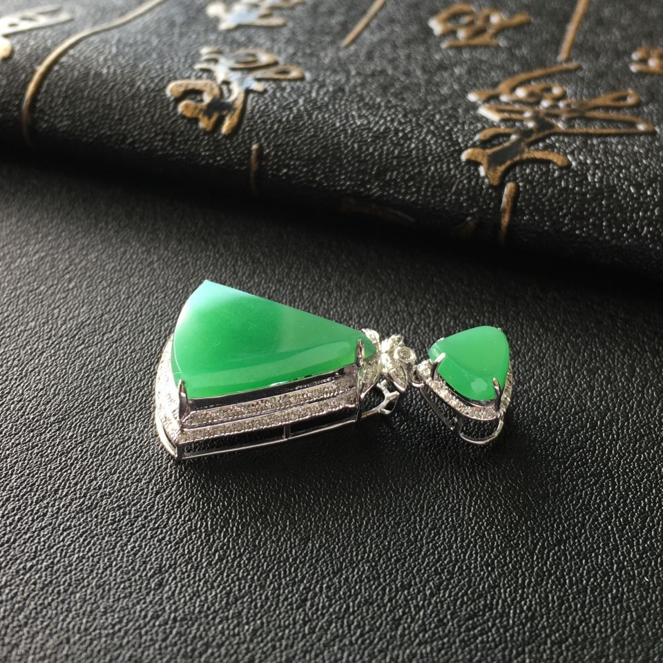 首页 >> 糯冰种翠色镶白金钻石胸坠