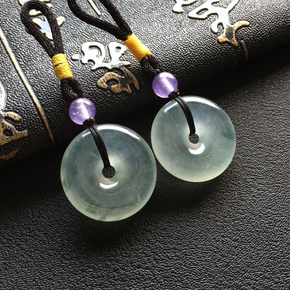 冰种飘花平安扣挂件一对走