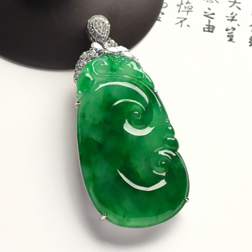 首页 >> 镶白金钻石冰种飘翠如意胸坠