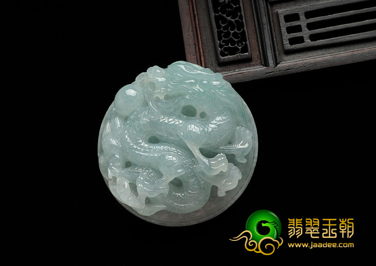 糯冰种晴水缅甸翡翠圆龙牌挂件