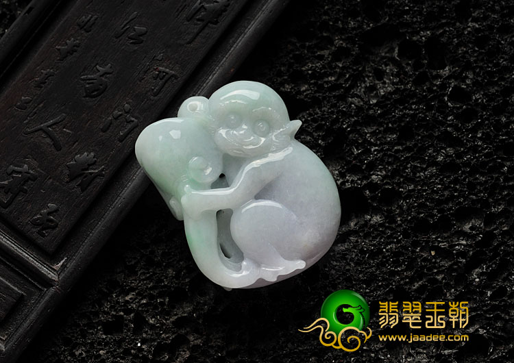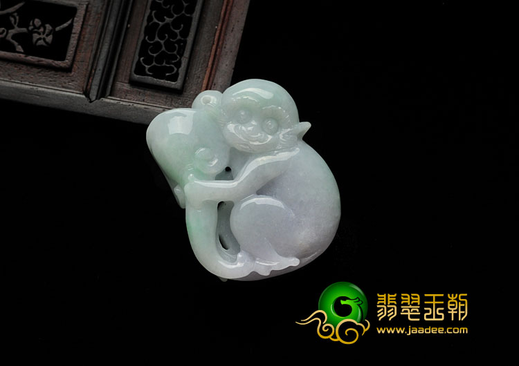 首页 >> 糯冰种春带彩缅甸翡翠灵猴送福挂件