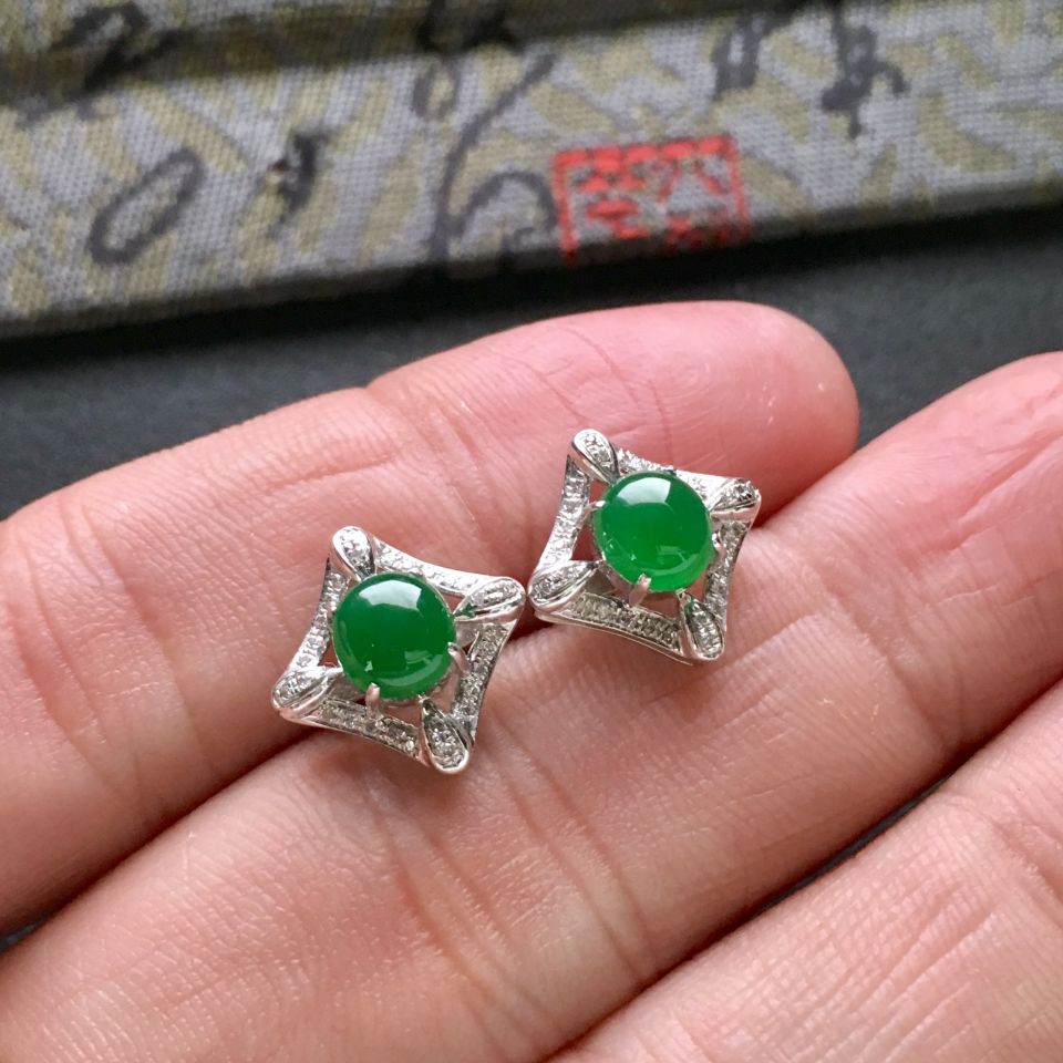 首页 >> 糯冰种翠色镶白金钻石耳钉一对
