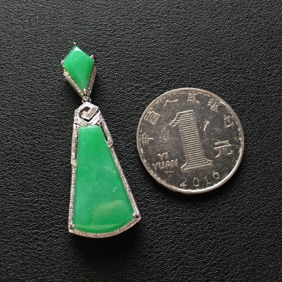 糯冰种豆绿镶白金钻石平安牌胸坠