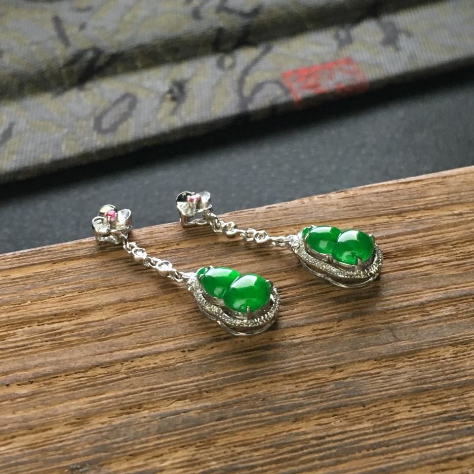 首页 >> 冰种阳绿镶白金钻石葫芦耳坠 一对