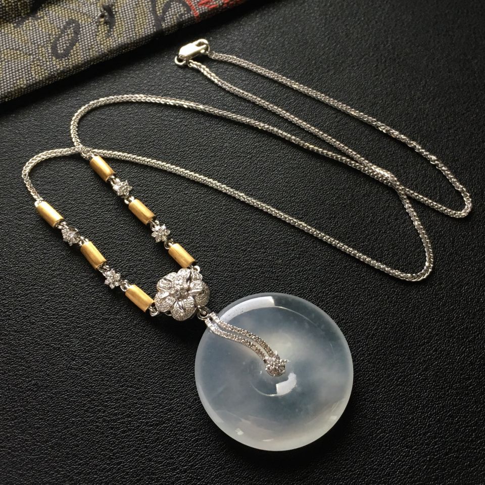首页 >> 冰种淡晴水镶白金钻石平安扣项链