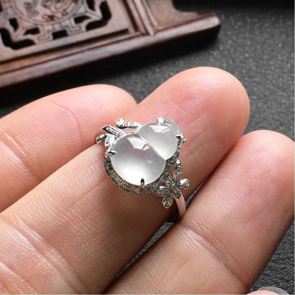 首页 >> (一口价扫货)冰种淡晴水镶白金钻石葫芦戒指