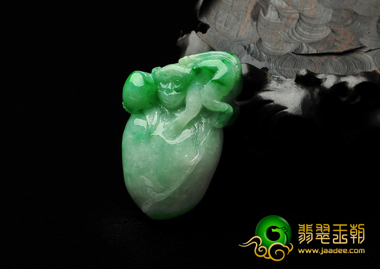 feicui细糯种翠色缅甸翡翠A货灵猴献寿挂件
