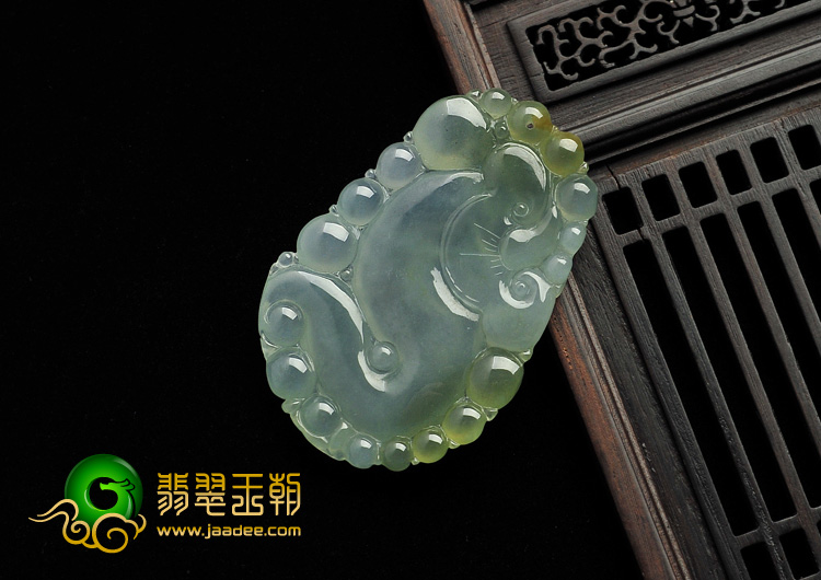 冰种晴水略带黄翡缅甸翡翠A货龙戏珠挂件