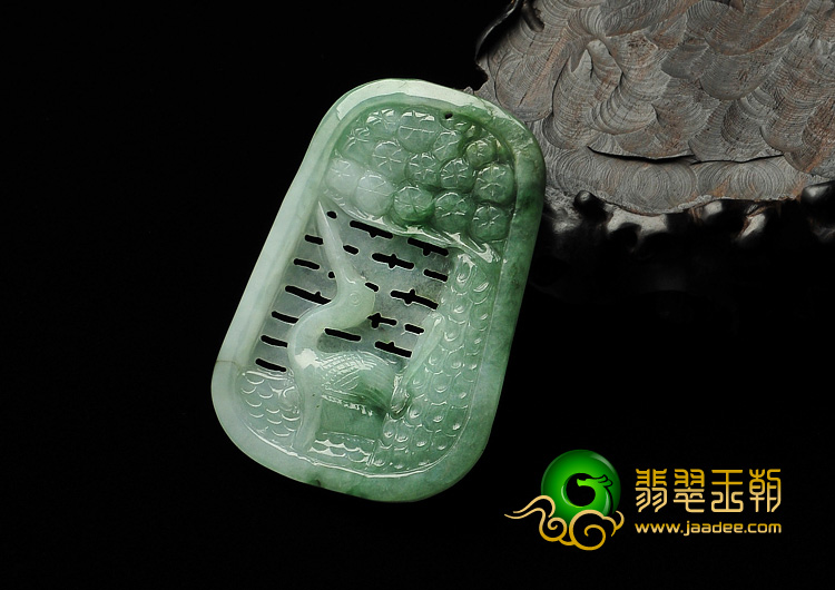 糯冰种飘花缅甸翡翠A货松鹤延年挂件