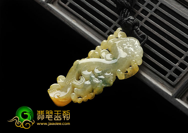 首页 >> 糯冰种黄翡飘花缅甸翡翠A货飞龙挂件