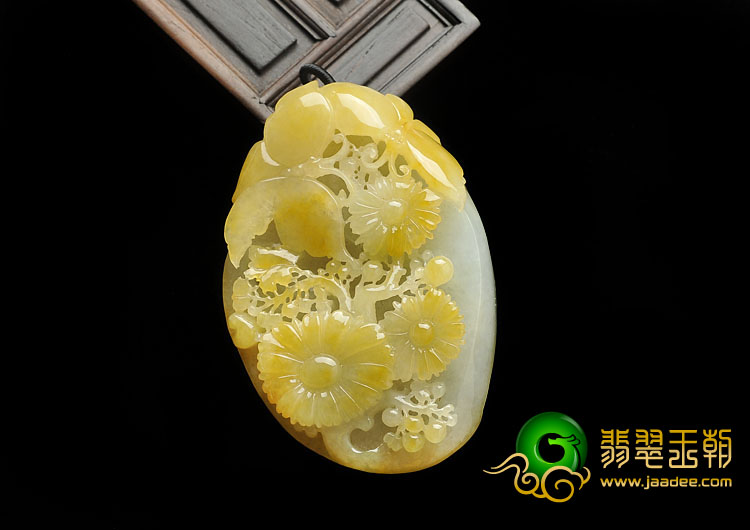 糯冰种黄翡缅甸翡翠A货蝶恋花挂件