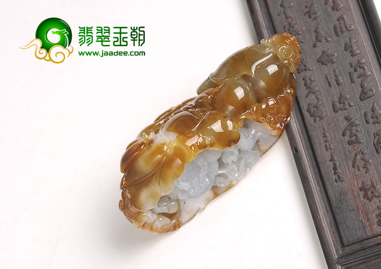 首页 >> 糯冰种褐黄翡缅甸翡翠A货招财进宝手玩件