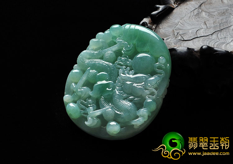糯冰种绿晴水缅甸翡翠A货龙牌挂件