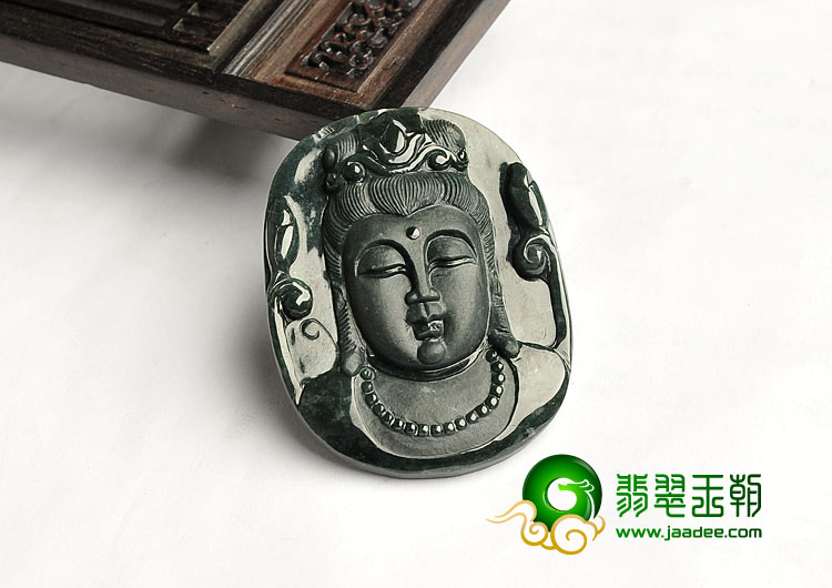 首页 >> 糯冰种墨翠缅甸翡翠A货观音头挂件