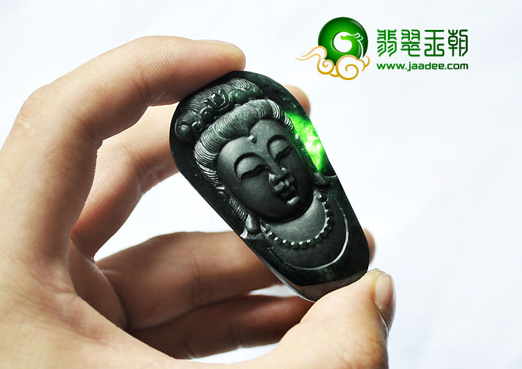 首页 >> 糯冰种墨翠缅甸翡翠A货观音头挂件