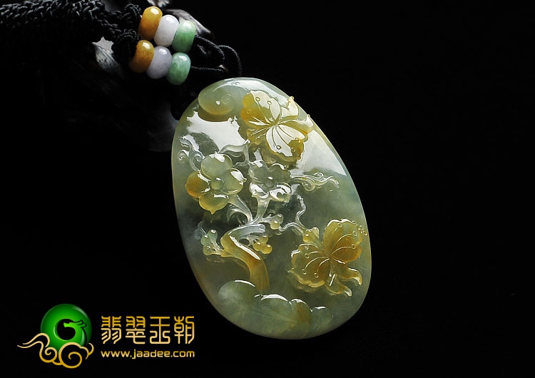 首页 >> 冰种黄翡缅甸翡翠A货蝶恋花挂件