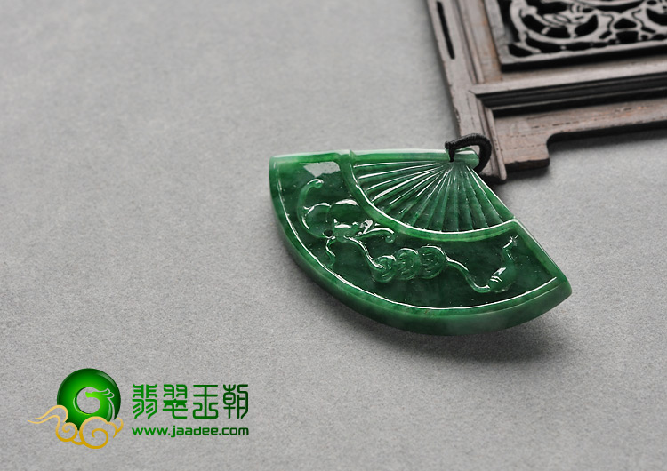 首页 >> 糯冰种翠色缅甸翡翠A货凤凰玉扇挂件
