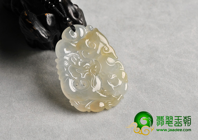冰种淡黄翡缅甸翡翠A货龙牌挂件