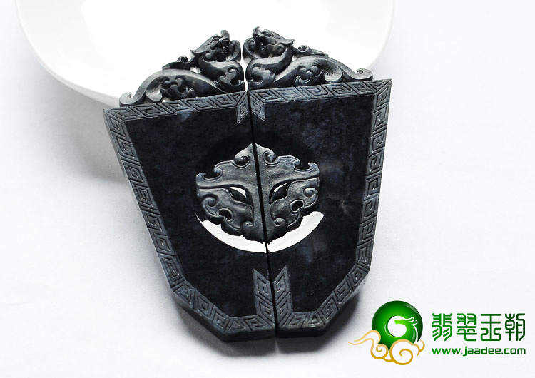 首页 >> 糯冰(乌鸡种)缅甸翡翠A货龙凤牌挂件(一对)