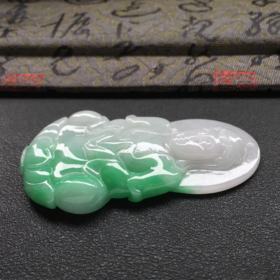 【描述】:细糯种飘翠观音挂件,白底青,绿色较为集中,观音尺寸大气,面相端庄,宝相庄严,搭配素绳即可佩戴。【尺  寸】高64.5mm 宽37mm 厚7.3mm