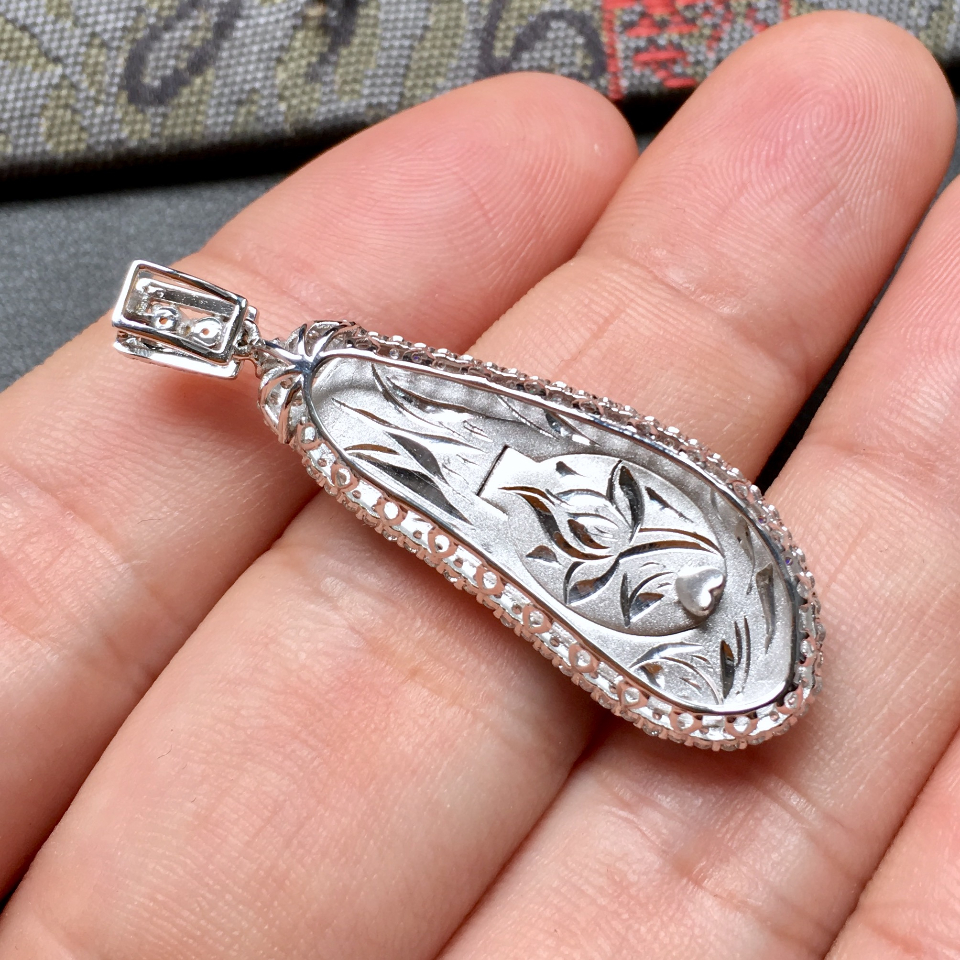 首页 >> 冰种蓝绿镶白金钻石四季豆胸坠