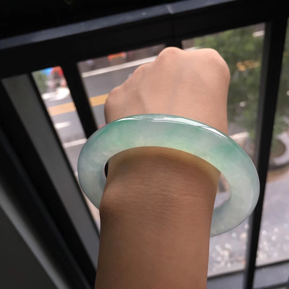 冰种飘翠圆条手镯(56.8m m)