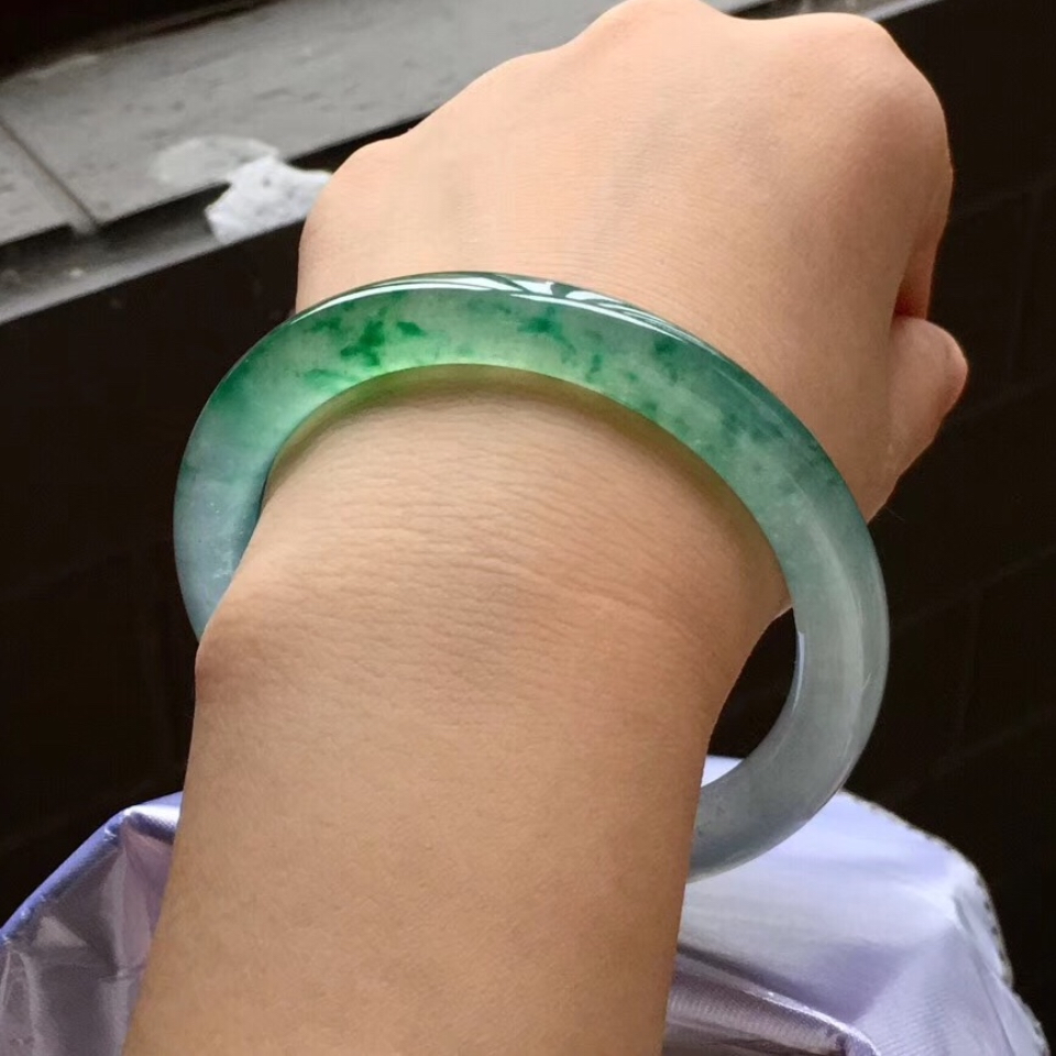 首页 >> 冰玻种飘翠圆条手镯(53.4mm)
