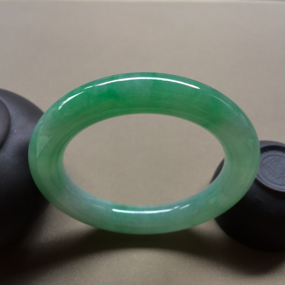 首页 >> 糯冰种翠色圆条手镯 57.8mm