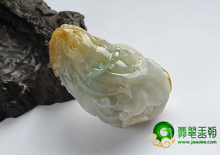 糯冰种黄翡略飘翠缅甸翡翠A货金玉满堂手玩件