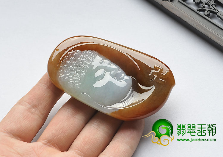 首页 >> 糯冰种红黄翡缅甸翡翠A货释迦牟尼头挂件