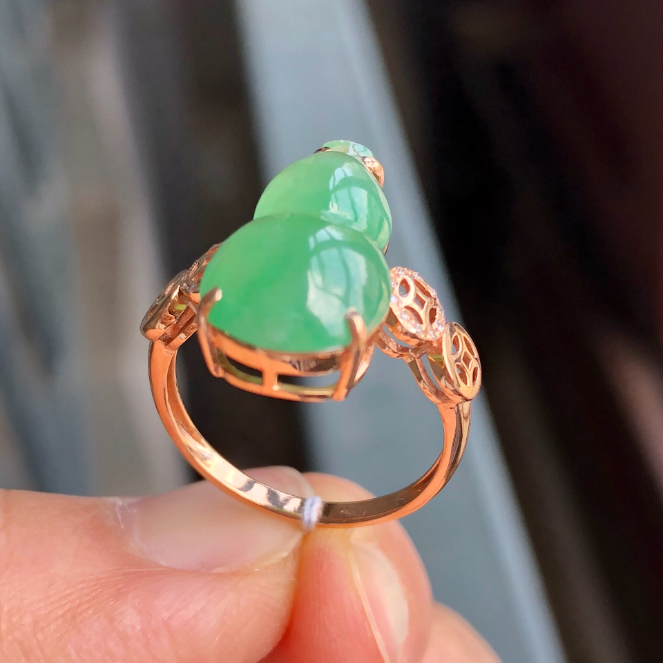 首页 >> 镶玫瑰金钻石糯冰种绿晴水葫芦戒指
