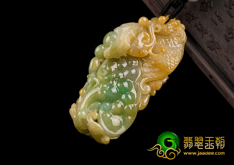 首页 >> 糯冰种黄加绿缅甸翡翠A货英明神武挂件