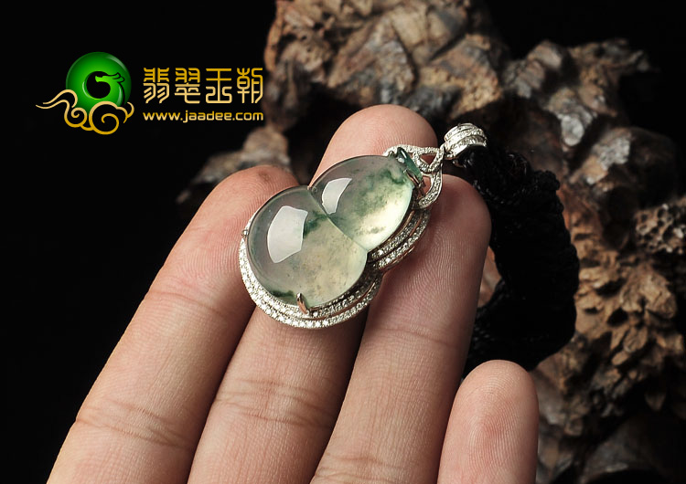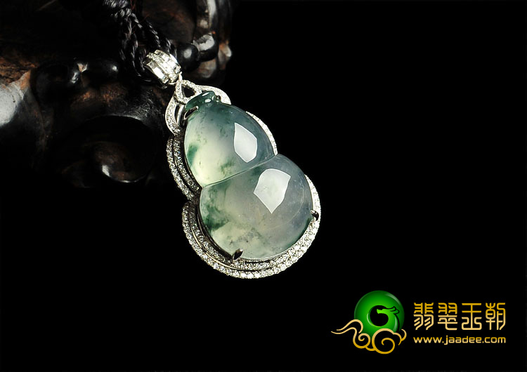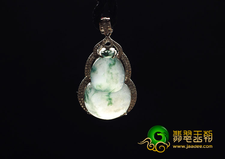冰种飘花缅甸翡翠A货镶白金葫芦胸坠(真钻)