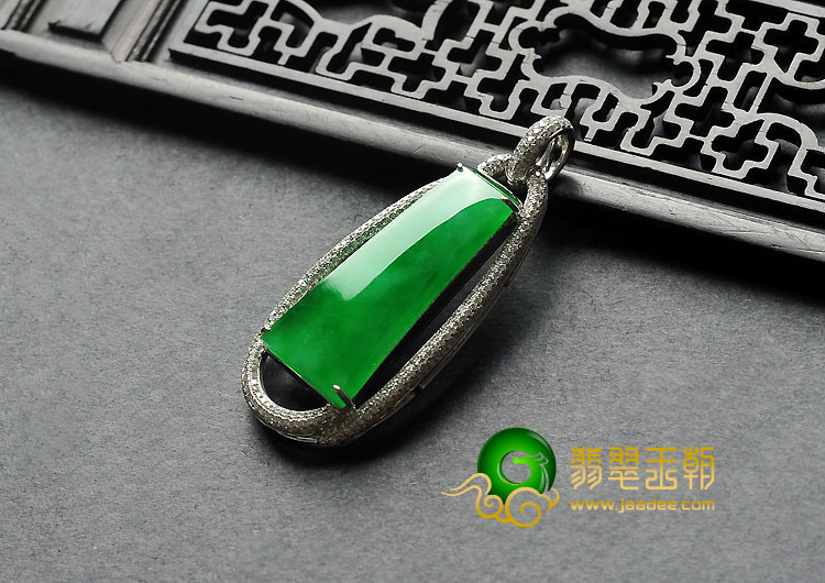 首页 >> (超值推荐)冰种正阳绿缅甸翡翠A货镶白金平安牌胸坠(真钻)