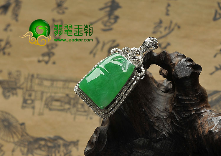 首页 >> 冰种阳绿缅甸翡翠A货镶白金节节高胸坠(真钻)