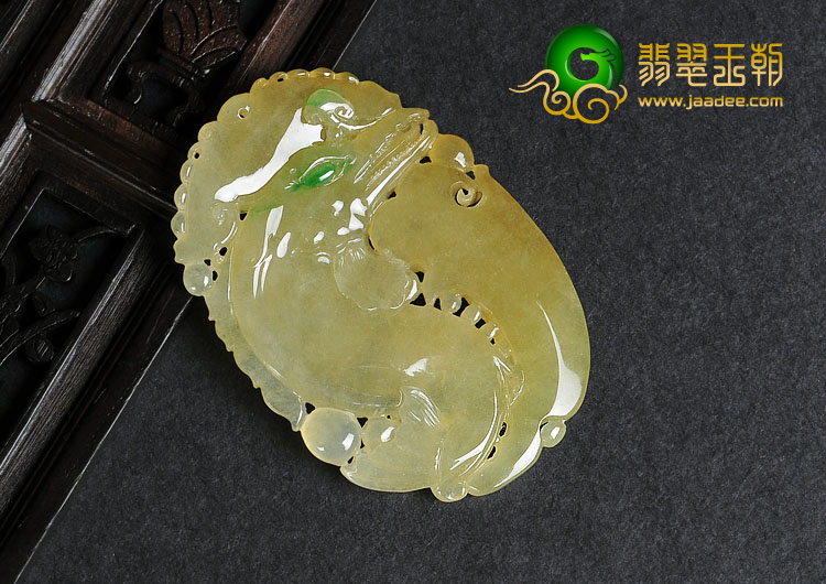 冰种黄加绿缅甸翡翠A货中华鲟挂件