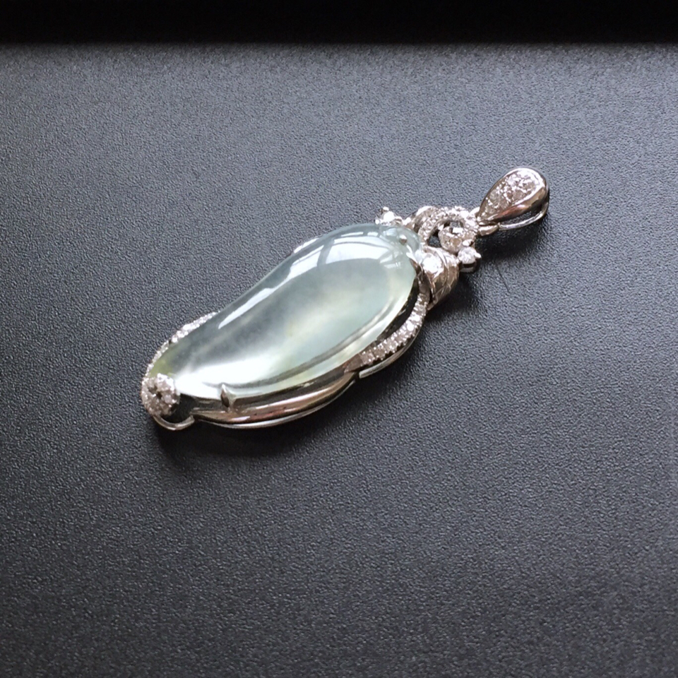 镶白金钻石冰玻种淡晴水翡翠福瓜胸坠