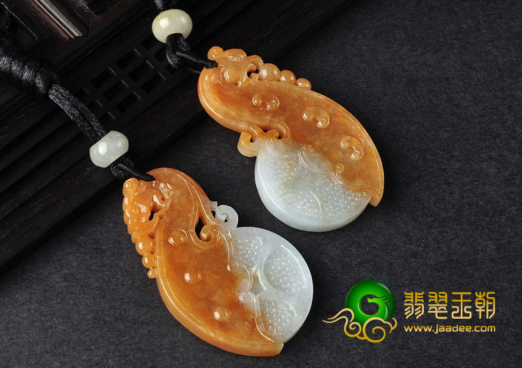 首页 >> 糯冰种红黄翡缅甸翡翠A货龙凤佩挂件